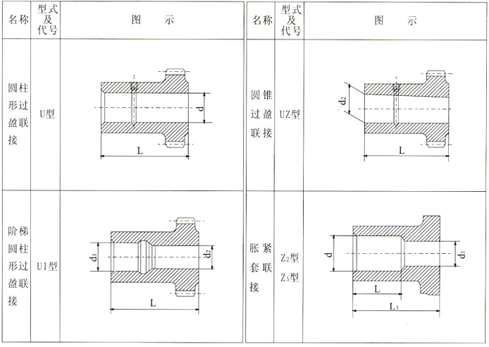 1、Y型、J型、Jl型圓柱形軸孔直徑與長度見表。
