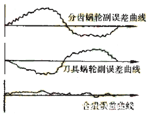 彭東林等所著《插齒機刀具合理選擇與機床精度提高》(刊于《制造技術與機床》1998年第1期)一文獻指出,插齒機傳動誤差主要取決于刀架蝸輪副和工作臺蝸輪副,如能使刀具蝸輪副的累積誤差與工作臺蝸輪副的累積誤差相抵消,就可有效地提高插齒機精度;谏鲜鏊悸,在安裝兩套蝸輪副時,用實際試切齒坯的方法,即切一只齒坯測出齒距誤差,然后固定分齒蝸輪,轉動調整刀具蝸輪,經數次切削齒坯調整刀具蝸輪,就可使兩套蝸輪副的齒距累積誤差抵消至最小程度(這時誤差曲線剛好相差180°),從而使被加工齒輪的齒距累積誤差達到最小值,機床的精度也提高了。兩套蝸輪副合成誤差曲線如圖2所示。蝸輪副的安裝,除了采用“誤差抵消法”外,還須注意保證徑向跳動,軸向竄動等項目要求。