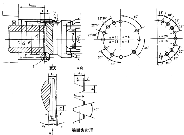 端面齒齒形尺寸及螺栓預(yù)緊力矩(JB/T3242-93)/mm