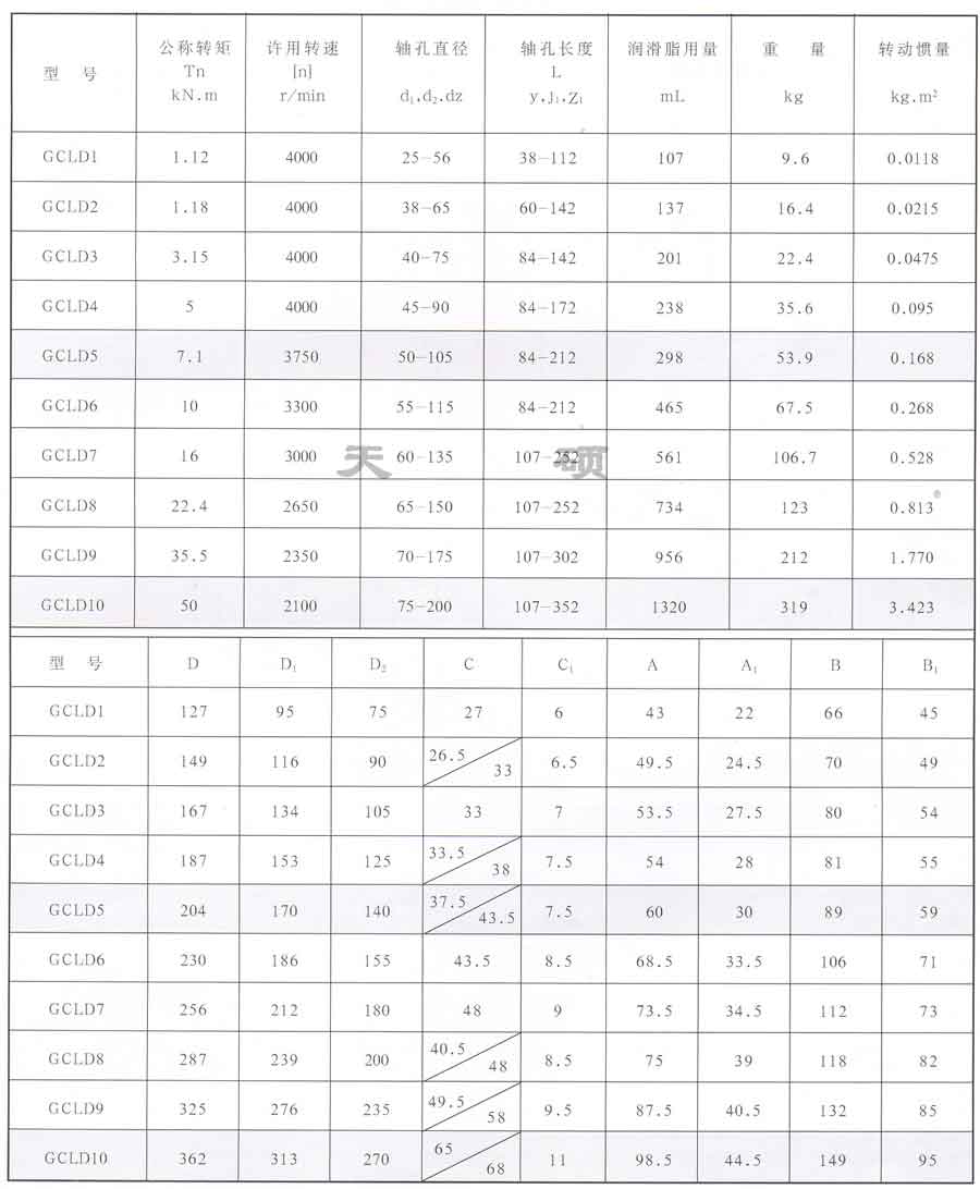 GCLD型鼓形齒式聯軸器基本參數和主要尺寸(JB/T 8854.1-2001)代替JB/ZQ4380 mm