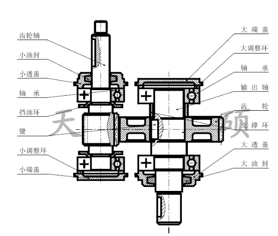 低速級齒輪的齒頂圓距箱底不應(yīng)小于30 ~ 35 mm 左右,以避免池底油泥雜物被帶到齒 面上來。