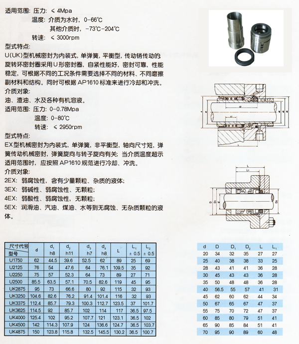 AY油泵用機封UK型EX