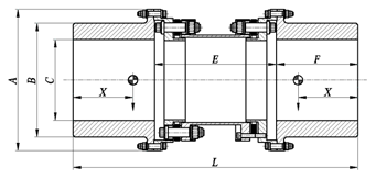 ◆聯軸器尺寸C、L、E、F是根據使用性能推薦的標準值,可按用戶要求設計。其它尺寸的L值,其扭轉剛度、轉動慣量等應另算;