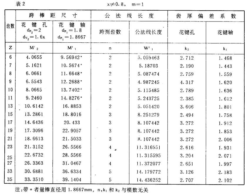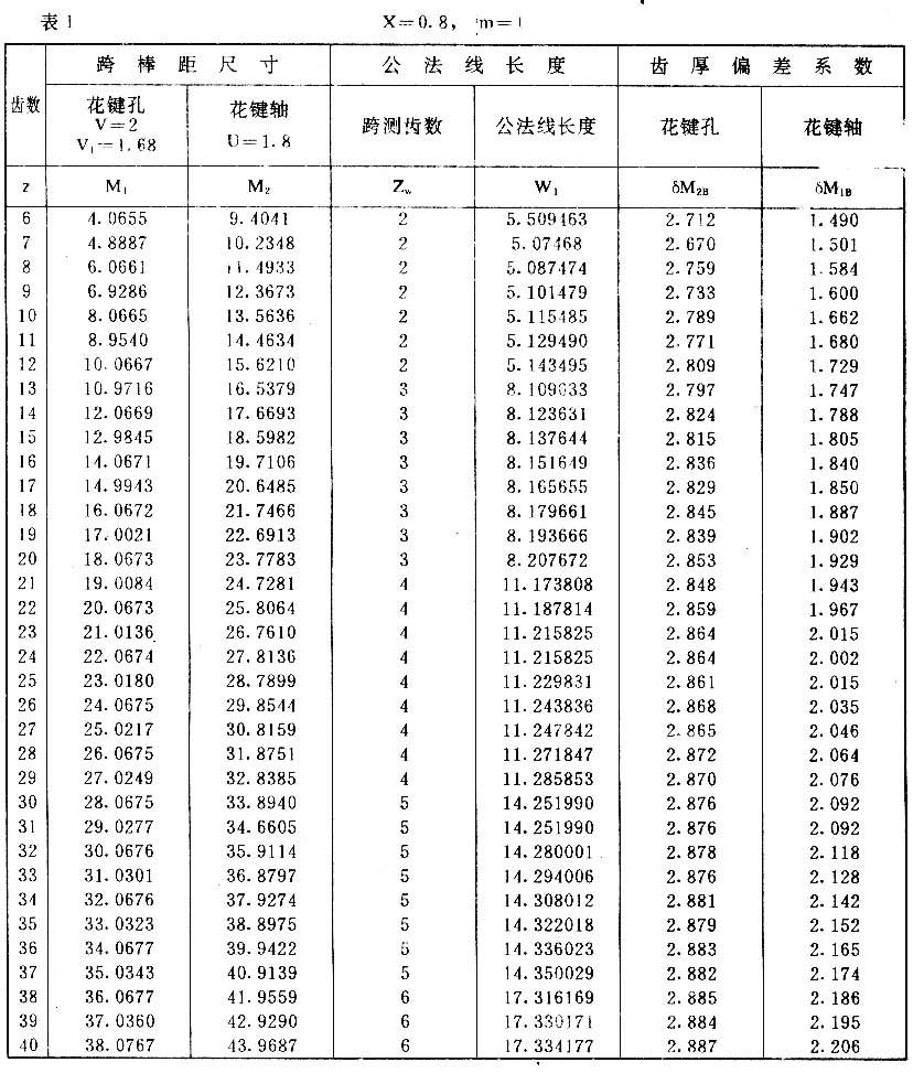 當m=1時的跨棒距可從表1中直接查得,將該數值乘以模數即是量值的公稱尺寸。