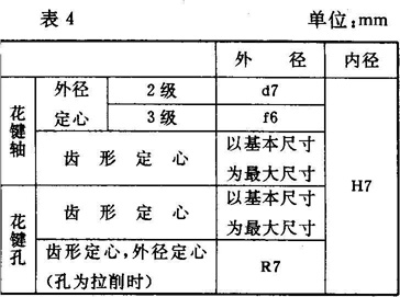 ④壓入配合:必有過盈,但外徑定心不采用此種配合。以上四種配合是通過改變花鍵軸的尺寸實現的。配合級別根據定心方式和配合種類可從表3中查得。
