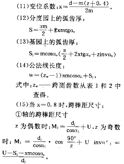 (3)位移量x和壓力角α:位移量X一般為0.8m,極少采用0.6m,0.633m,0.9m,0.967m。分度圓上的壓力角α通常為20°。