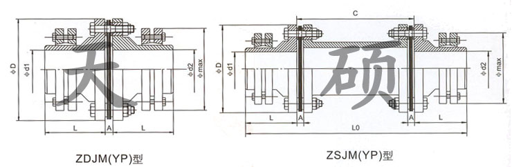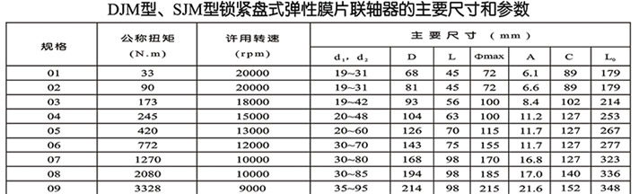 ZDJM(ZSJM)型鎖緊盤式單(雙)型彈性膜片聯軸器的主要尺寸和基本參數.