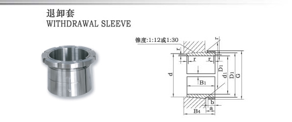 退卸套對裝在軸端,經常拆卸、規格較大的圓錐孔軸承(調心球軸承,調心滾子軸承,雙列圓柱滾子軸承)裝拆維修特別方便,廣泛用于輕工、冶金、軋機等機械設備上。 |