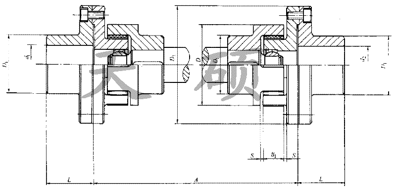 LXQ接中間軸球鉸型星形彈性聯軸器基本性能參數和主要尺寸