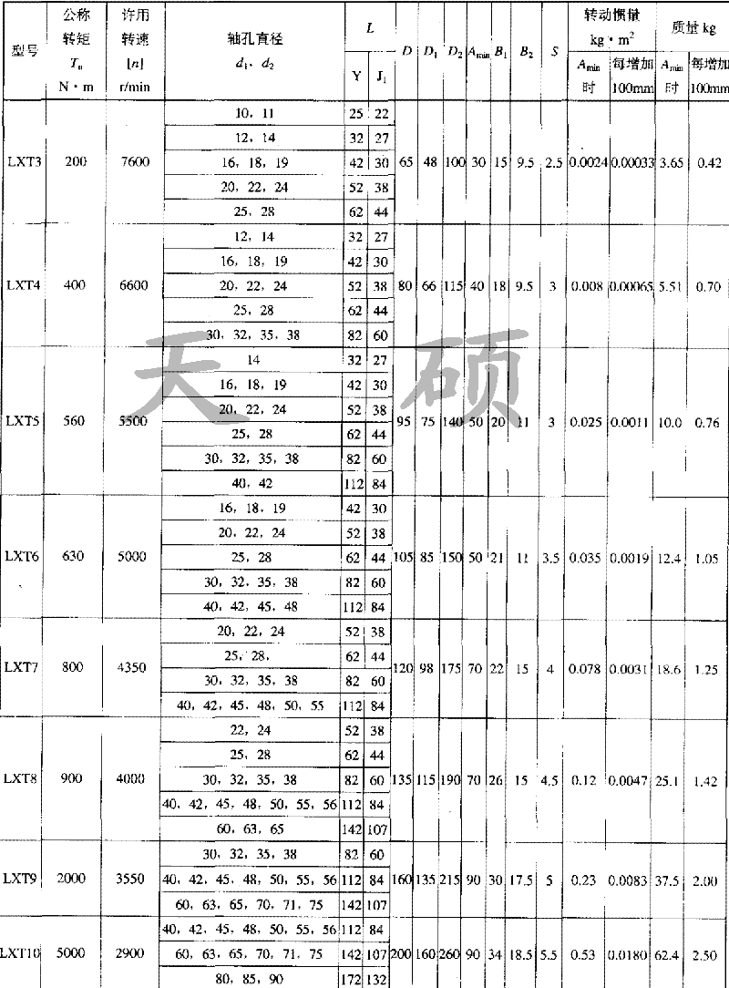 LXT接中間套型星形彈性聯軸器基本性能參數和主要尺寸