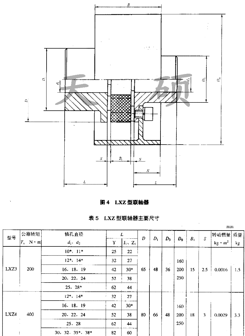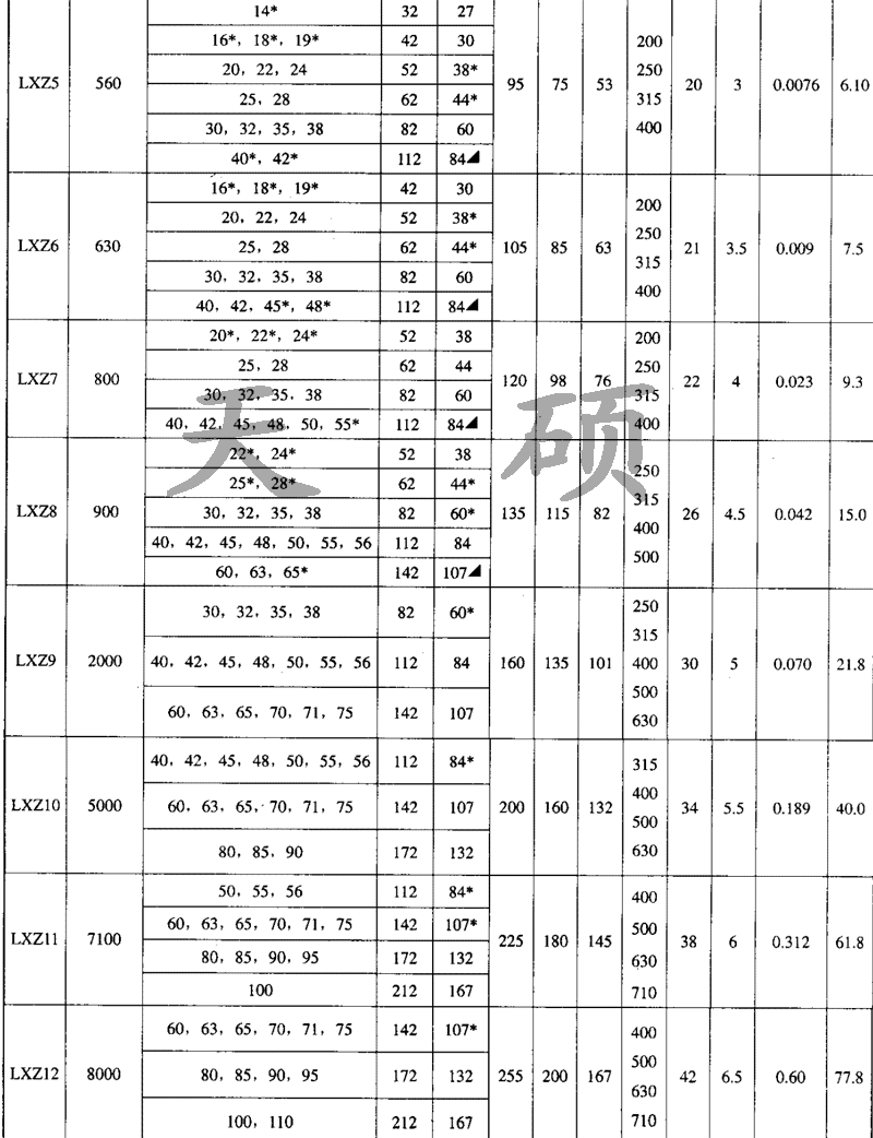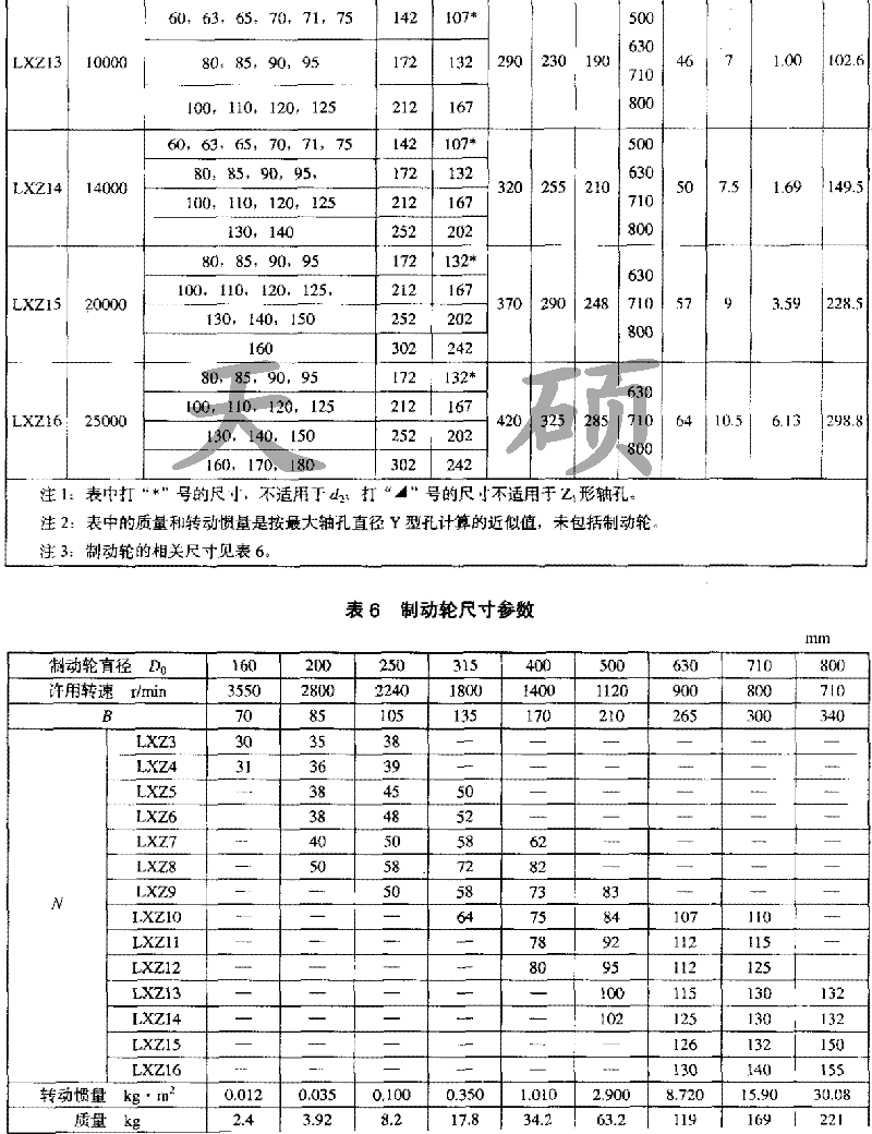 LXZ帶制動輪型星形彈性聯(lián)軸器基本性能參數(shù)和主要尺寸
